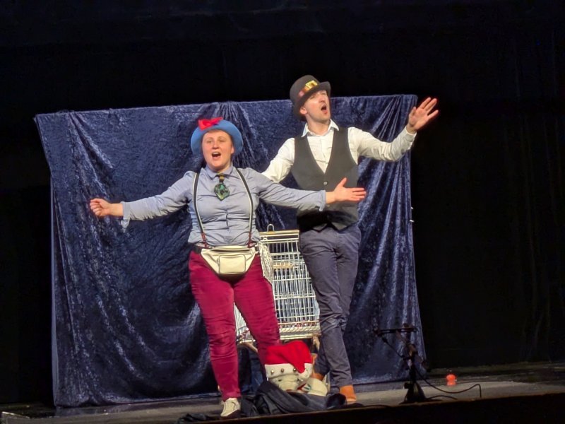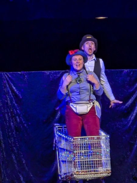 La compagnie “Les plus hautes eaux connues” a amusé les enfants avec l’histoire de Mimo et Tuffe. Le Père Noël a disparu ! Mimo et Tuffe sont partis à sa recherche  pour sauver Noël !