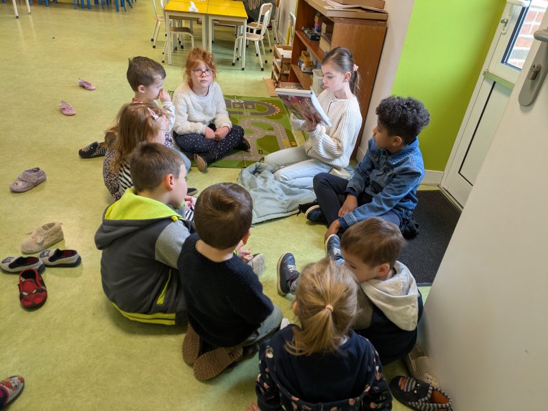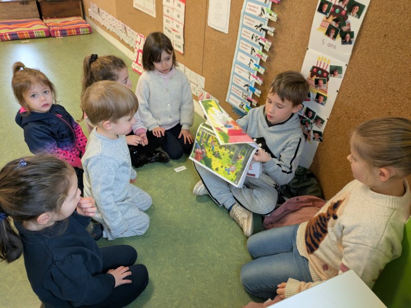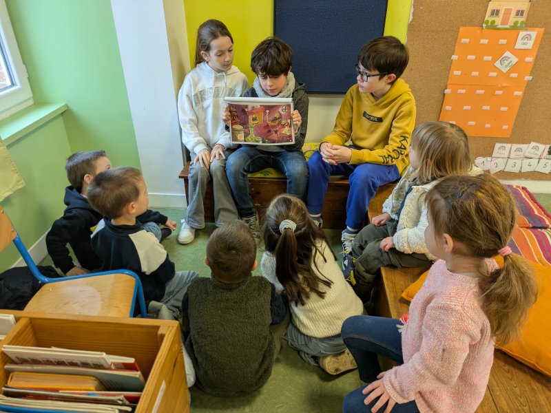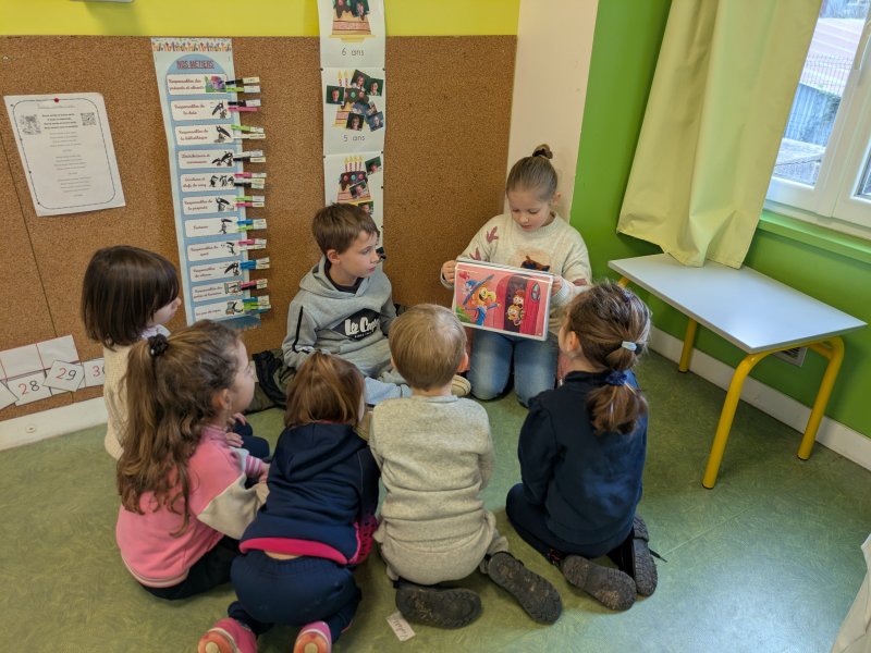 By classe de CP-CE17 avril 2025CM1-CM2, Maternelle Le 4 février, après un temps de préparation, les CM et quelques CE2 sont allés dans la classe maternelle lire des albums aux plus jeunes. [Show as slideshow]