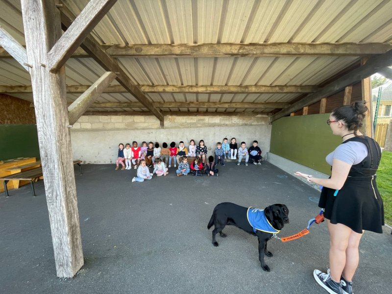 Le 20 mars, Sarah est venue à l’école avec sa chienne Paëlla pour nous présenter l’association Handi’chiens.